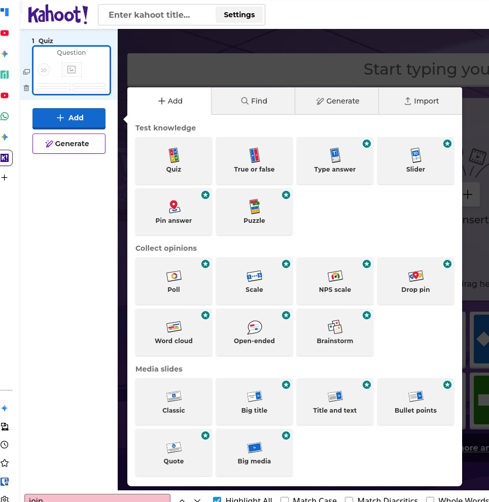 - Advanced questions (Puzzle, Type Answer, Word Cloud, Open-ended, Polls)